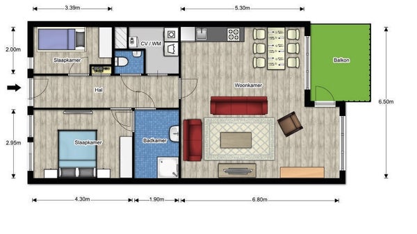 - Totaal: € 1.595,- per maand (exclusief gas, water en elektra)