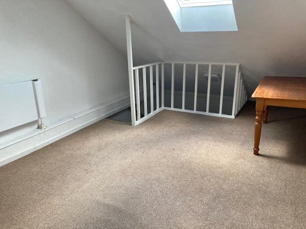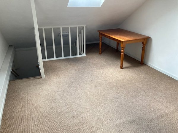 Hier bevindt zich een ruime zolderslaapkamer.