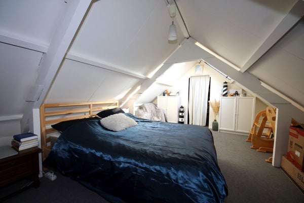 Je komt via de poort in de achtertuin terecht. In de achtertuin vind je een soort oude schuur waarin zich het appartement bevindt. Je betreedt deze schuur waarna je de trap naar boven neemt. Boven vind je de gezellige, gemeubileerde huiskamer. Hier vind je tevens de open keuken. Naast de keuken bevindt zich de badkamer met toilet, wastafel en douche. Vanuit de huiskamer kun je de trap naar de zolder nemen, waar je de slaapruimte vindt. Achteraan bevindt zich een kleine ruimte welke je bijvoorbeeld kunt gebruiken als kledingkast.