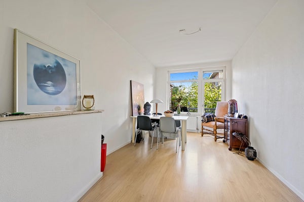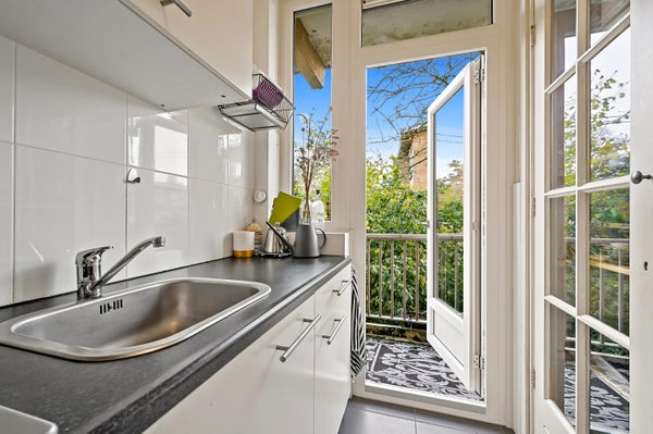 Via de gesloten entree kom je in het trappenhuis naar de eerste etage. Het appartement betreed je via de hal/gang met vaste kast en een toilet met fonteintje. De ruime woon- en eetkamer en suite beschikt over drie vaste kasten en biedt door de grote raampartijen veel licht. De twee zijkamers zijn beiden uitstekend geschikt als slaapkamer. De afgesloten keuken is praktisch ingericht. De badkamer beschikt over een douche en wastafel. Aan de achterzijde ligt het balkon, dat zich uitstrekt over de volledige breedte van de woning en is voorzien van twee ruime kasten. In de onderbouw bevindt zich een zeer grote privéberging.