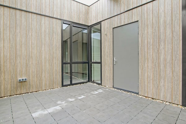 Gang/portaal met tevens toegang tot de patiotuin en het slaapgedeelte. Het appartement beschikt over 1 ruime slaapkamer. De badkamer is geheel betegeld en ingericht met een wastafel, douche en toilet.