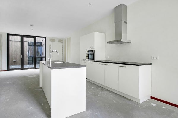 Entree/hal met meterkast en betegeld toilet met fonteintje. Royale woonkamer met open keuken met kookeiland en voorzien van diverse inbouw apparatuur waaronder een koelkast, vriezer, combi oven/magnetron, spoelbak, elektrische kookplaat en afzuigkap. In de berging bevindt zich de aansluiting voor het witgoed. Vanuit de woonkamer is middels openslaande tuindeuren de patiotuin van ± 21 m² bereikbaar.