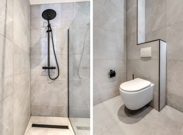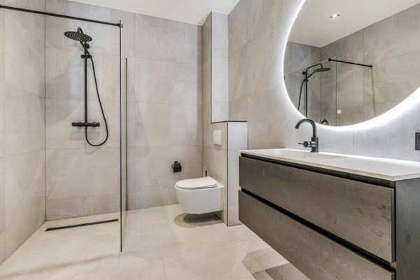 Het appartement beschikt over 1 slaapkamer en een luxe badkamer. De badkamer is ingericht met een ruime inloopdouche, modern badkamermeubel en designradiator.