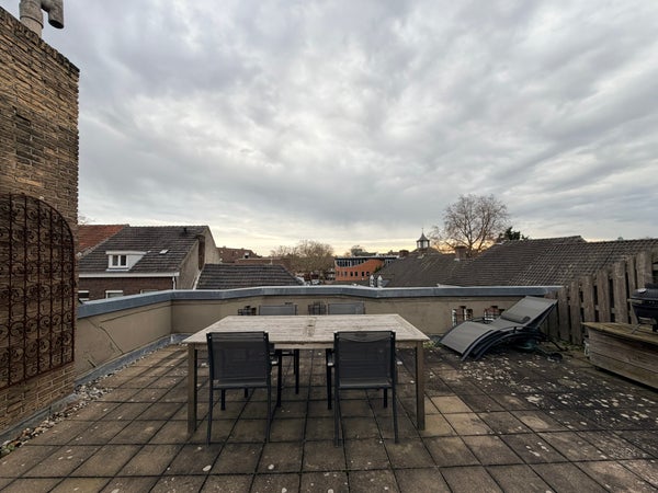 Per 15-01-2026 is dit jaren '30 stadsappartement te huur. Het appartement beschikt over 2 slaapkamers en een zonnig dakterras van 41 m² met uitzicht op de binnenstad. De kelder is via de eigen entreehal bereikbaar en is voorzien van elektra. De gezamenlijke entree leidt naar een centrale hal met glas-in-lood deuren. Op de eerste verdieping vind je de living van 31 m² met open keuken en moderne apparatuur. De tweede verdieping heeft een royale overloop naar de slaapkamers; een kleine van 5,5 m² en een grote van 20 m². De badkamer heeft een inloopdouche en een tweede toilet. Geniet van het dakterras in alle privacy. Het appartement is gerenoveerd in 2005 en 2013, met dubbel glas en een eigen C.V.-ketel. Huurprijs is € 1.090 inclusief € 15 servicekosten.