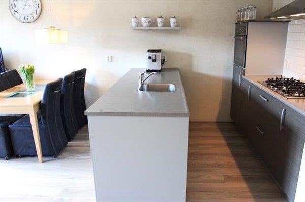 Verder beschikt de woning over een ruime woonkamer met openslaande deuren met frans balkon. Hierdoor heeft de woonkamer veel lichtinval wat erg gezellig en ruim aandoet (circa €30 m2). De open keuken beschikt over een kookeiland, vaatwasser, 5pits kookplaat, afzuigkap, oven en veel opbergruimte.