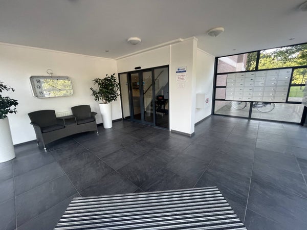Parkeer je auto voor de deur en kom binnen in de entree, via de trap of lift ga je naar de 9de verdieping.