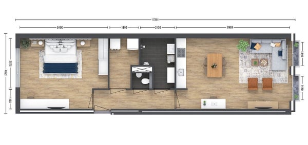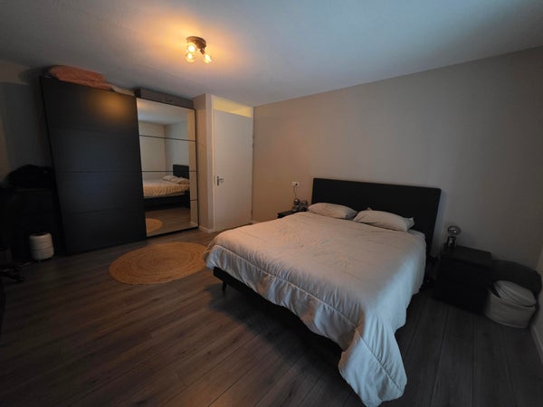 Vanuit de hal bereikt u de slaapkamer, berging met ruimte voor aansluiting wasmachine, badkamer, het toilet, en de woonkamer met open keuken. De keuken is voorzien van kookplaat met afzuigkap en een ingebouwde vaatwasser. De badkamer is uitgerust met een wastafel, spiegel en planchet, inloopdouche en designradiator.