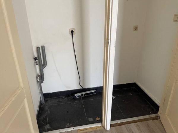 Kast met daarin aansluiting voor de wasmachine en droger,