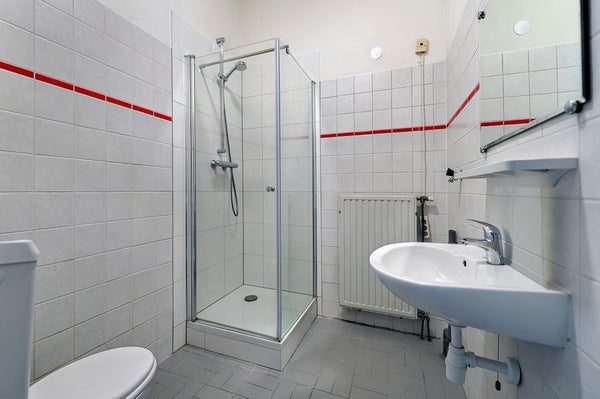Je bereikt de woning via de trapopgang. Het appartement beschikt over een ruime slaapkamer, ideaal voor rust en ontspanning. De aangrenzende badkamer biedt alle gemakken die je nodig hebt. De woonkamer straalt een knusse ambiance uit, perfect om te ontspannen of gezellige momenten met vrienden en familie te delen. De deels open keuken voegt een eigentijds tintje toe aan de ruimte en nodigt uit tot culinaire avonturen. In de keuken zit geen apparatuur, uiteraard is hier wel de ruimte voor.