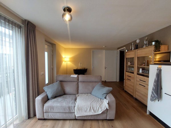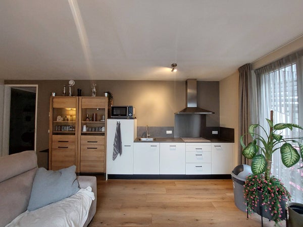 Bij binnenkomst stapt u meteen binnen in de gezellige woonkamer met open keuken. De keuken is voorzien van kookplaat met afzuigkap en een ingebouwde vaatwasser. Via de woonkamer is ook de eerste slaapkamer te bereiken.