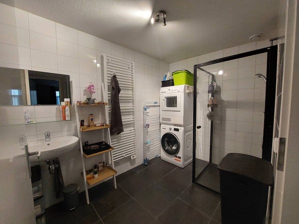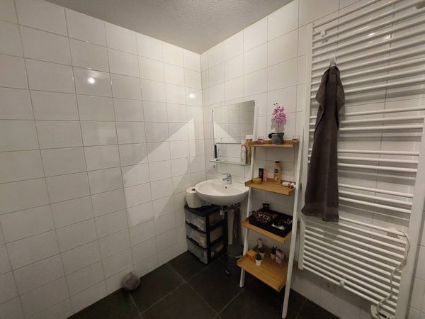 Vervolgens komt u uit in de hal waarnaar u naar de tweede slaapkamer kunt, het apart toilet, de bergruimte en de badkamer. De badkamer is uitgerust met een wastafel, spiegel en planchet, inloopdouche en designradiator.