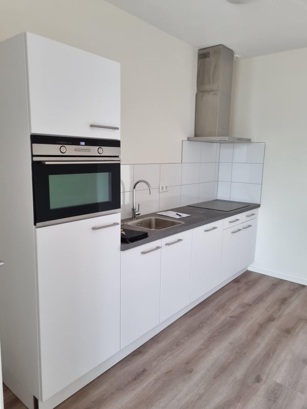 Dit appartement is gelegen op de eerste etage. Entree in de keuken welke is voorzien van alle gemakken, zoals een koelkast, vaatwasser, combimagnetron, kookplaat en afzuigkap. Doorloop naar de woonkamer welke toegang geeft tot het balkon.