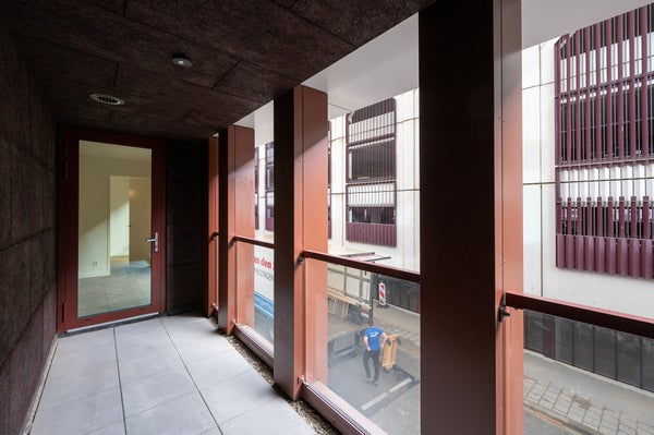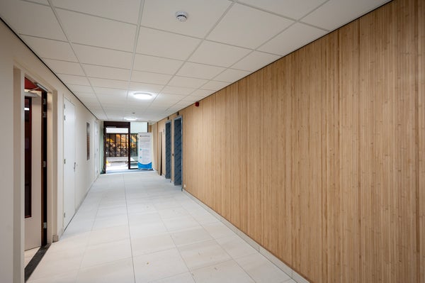 Bij binnenkomst tref je een centrale hal met brievenbussen en een gezamenlijke fietsenberging. In het appartement valt direct de visgraatvloer op, die door de gehele woning is doorgelegd.