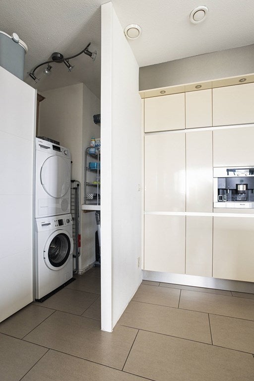 Naast de keuken is er een extra opslagruimte waar de wasmachine zich bevindt, plus een grote kast voor extra opslagruimte.