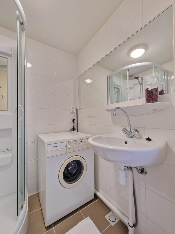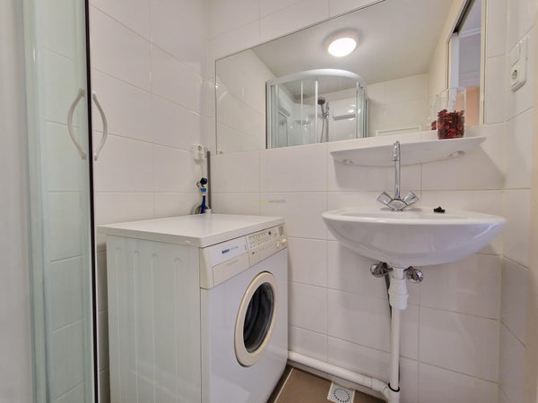 Entree studio, hal met separaat toilet, moderne badkamer voorzien van luxe douchecabine, wastafel, wasmachine en design radiator.De nette keuken is voorzien van een gaskookplaat, afzuigkap, combi-magnetron en koelkast. Via het woon-slaapgedeelte is het ruime balkon te bereiken.
