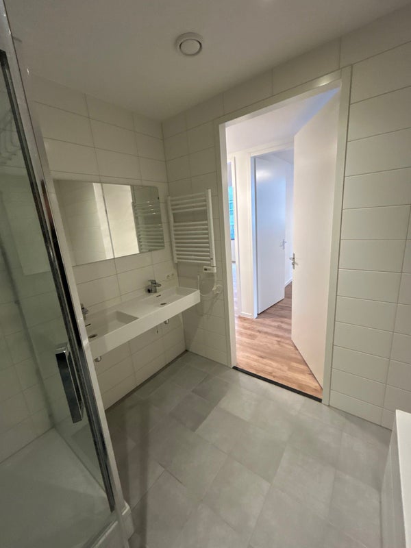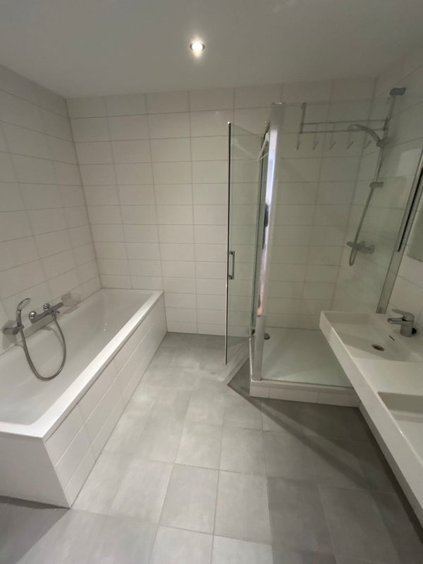 In de badkamer geniet je de luxe van een dubbele wastafel, een ruime douche en een heerlijk ligbad. Het toilet bevindt zich separaat in de woning.