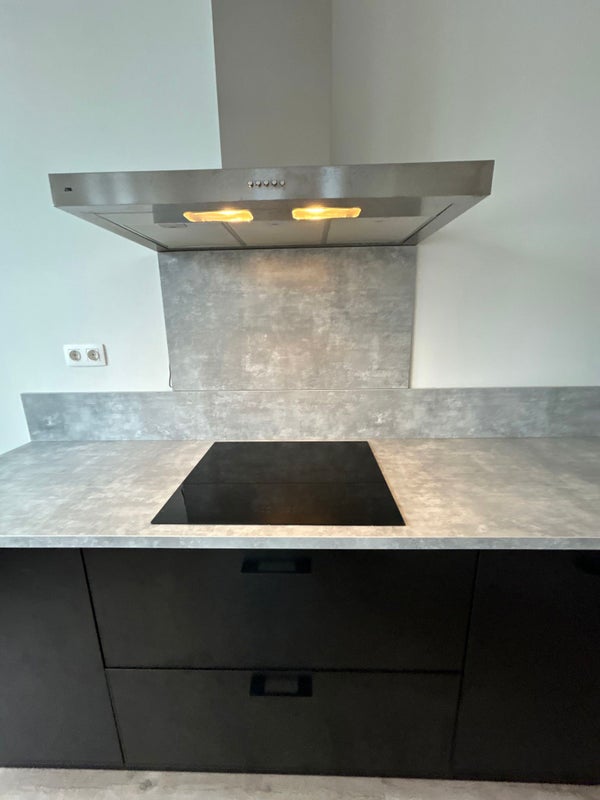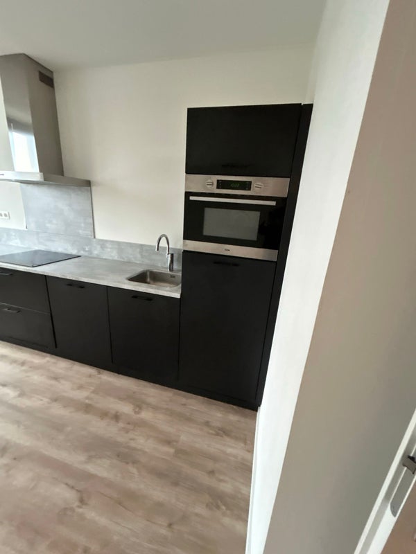 De moderne keuken is volledig uitgerust met een koelkast met vriesvak, combimagnetron, inductiekookplaat, afzuigkap en een vaatwasser.