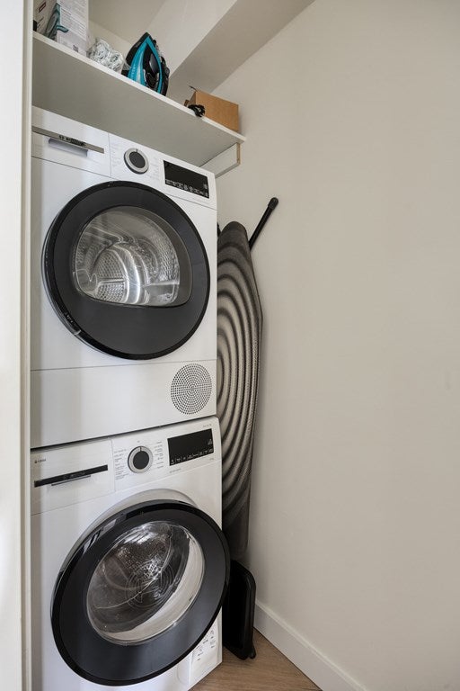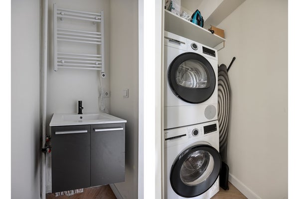 Via de hal kunt u de interne berging betreden waar de gloednieuwe wasmachine en aparte droger zich bevinden.