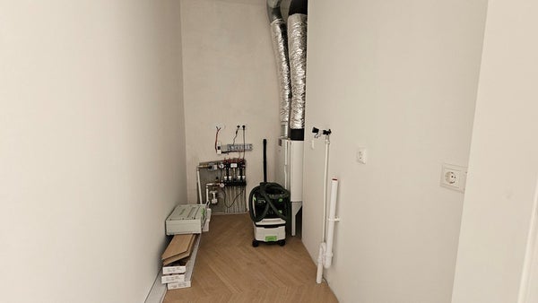 Bij binnenkomst tref je een ruime hal met aan weerszijden twee grote slaapkamers. Verderop bevinden zich een separaat toilet, een moderne badkamer met inloopdouche en een praktische wasruimte met aansluiting voor wasmachine en droger. In deze ruimte is ook het Warmte-Terugwin-systeem (WTW) geplaatst, dat zorgt voor een constant en prettig binnenklimaat.