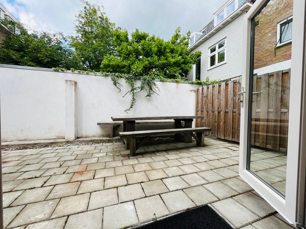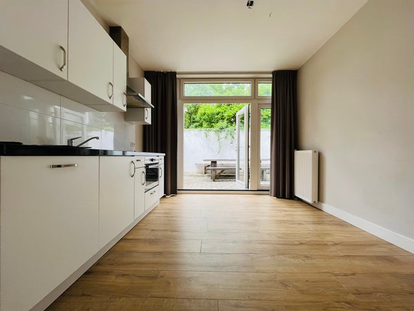 LAYOUT: Entrance at street level, where you enter the communal hallway. The apartment is located immediately on the right on the ground floor. Entrance door leading into the living room with open kitchen, with a total size of approx. 23 m². The open kitchen is equipped with an induction hob, extractor, fridge, freezer, combi microwave and dishwasher. There are two bedrooms: one at the front of approx. 7 m² and one at the rear of approx. 9 m². The bathroom is fitted with a shower, washbasin and toilet. The spacious garden is accessible both from the rear bedroom and the living room.