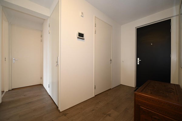 entree van de woning, ontvangsthal met videofoon, inbouwkast en apart toilet en een aparte wasruimte met wasmachine en droger.