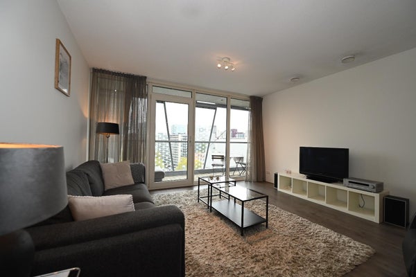De ruime woonkamer met afmeting 9.06 x 4.52 m met open keuken geeft toegang tot het ruime balkon, waar je heerlijk kan loungen met fraai uitzicht over de skyline van Rotterdam. Vanwege de grote raampartijen in het appartement kan er veel natuurlijk licht de woning binnentreden. De open keuken is voorzien van inbouwapparatuur zoals combi-oven/magnetron, koelkast, vaatwasmachine en inductiekookplaat met afzuigkap en aanvullend een aparte vriezer De master bedroom, afm. ca. 3.50 x 4.70 m biedt tevens toegang tot het balkon. Tweede slaapkamer met afmeting ca. 2.66 x 3.61/5.18 m is voorzien van een tweepersoons logeerbed.