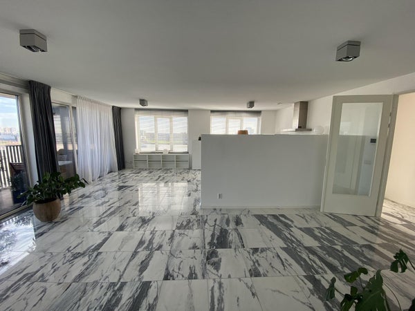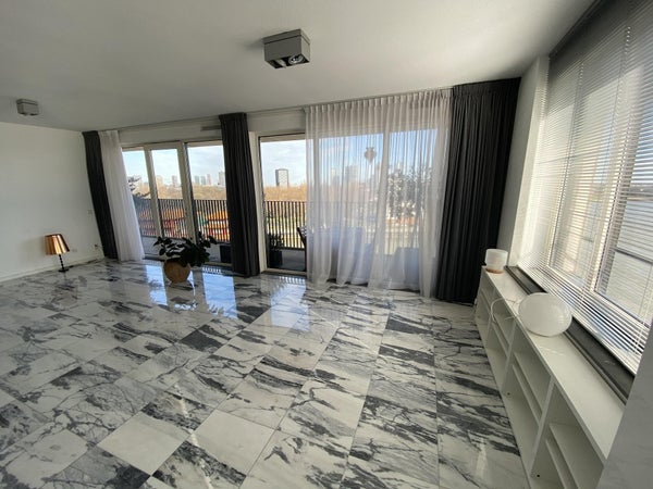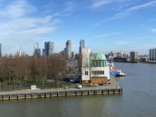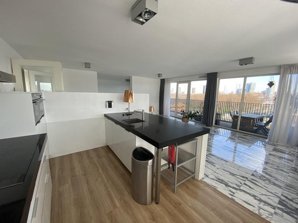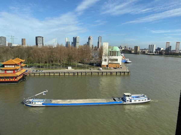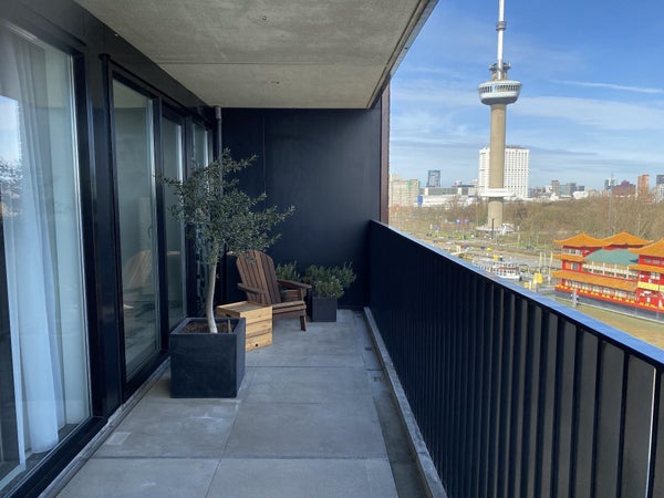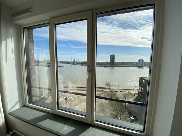 Fantastisch uitzicht te huur vanuit dit ruim ( 130 m2 ) en goed afgewerkte 3 kamer appartement met eigen inpandige garagebox gelegen op een prachtige locatie in Rotterdam. Het appartement bevindt zich op de 8 e etage van een modern complex en heeft een geweldig uitzicht over de Maas en de skyline van Rotterdam. Dit fraaie appartement is rustig maar zeer centraal gelegen op de Mullerpier. In de omgeving vindt u diverse restaurants, Albert Heyn, theaters, het Erasmus MC, de Euromast en Het Park.