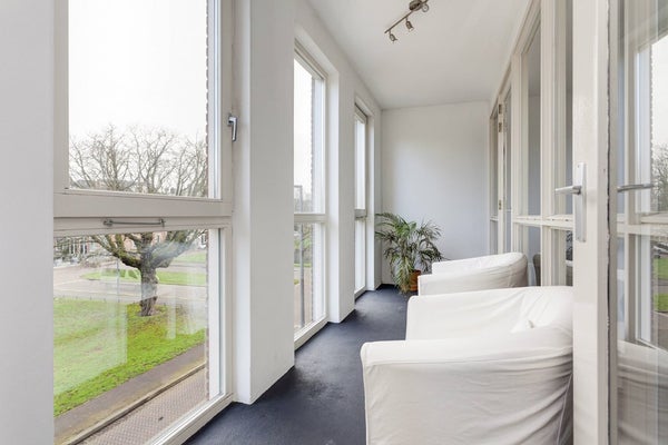 Het appartement heeft een lichte en aantrekkelijke woonkamer met een ruime eetruimte en open keuken. Naast de woonkamer bevindt zich de lichte serre die ook toegankelijk is vanuit de grote slaapkamer.