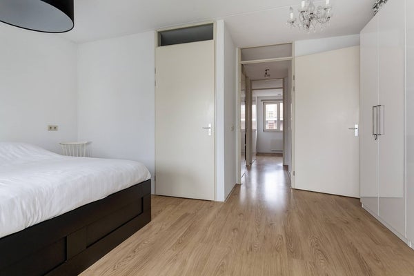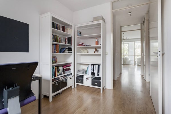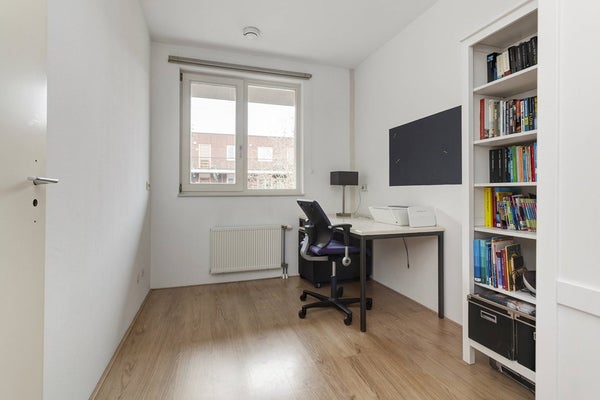 Vanuit de hal zijn alle drie de slaapkamers te bereiken. De grootste slaapkamer heeft een tweepersoonsbed en een ruime kast. De tweede slaapkamer heeft een slaapbank en de derde slaapkamer beschikt momenteel over een bureau en meerdere kasten, waardoor het een zeer geschikte ruimte is als kantoor.