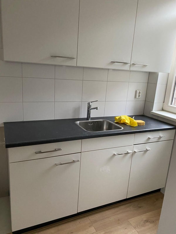 • Keuken voorzien van een keukenblok met kasten (geen volledig ingerichte keuken)