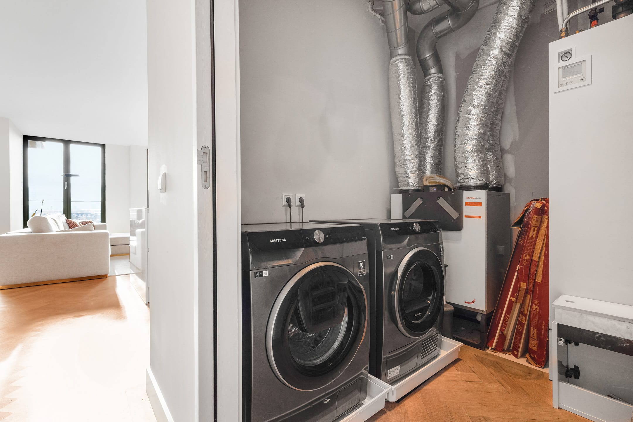 Dit luxe 3-kamer appartement is gelegen in het voormalig schoolgebouw ‘De Raedt’, dat is getransformeerd tot een modern appartementencomplex op de hoek van Mathenesserlaan en Heemraadssingel. Het appartement op de 5e verdieping beschikt over een ruim balkon met uitzicht op de omgeving. Bij binnenkomst via de centrale hal vindt u een moderne gang met toilet en ruimte voor wasapparatuur. De hoofd-slaapkamer en een tweede slaap-werkkamer bieden beiden kastenwanden. De moderne badkamer met inloopdouche en dubbele wastafel, en de lichte woon-eetkamer met open keuken en kookeiland maken het geheel compleet. Het appartement beschikt over een eigen parkeerplek met laadpaal en berging, en is van alle gemakken voorzien, waaronder vloerverwarming en een warmtepomp. Woonoppervlakte: circa 103 m².