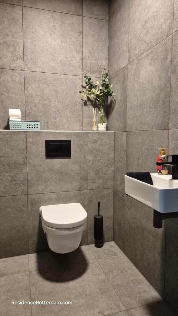 Apart toilet met fonteintje - Berging met wasmachine, droger en voldoende opslagruimte