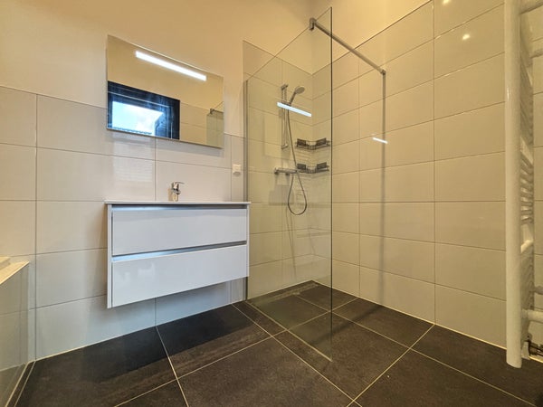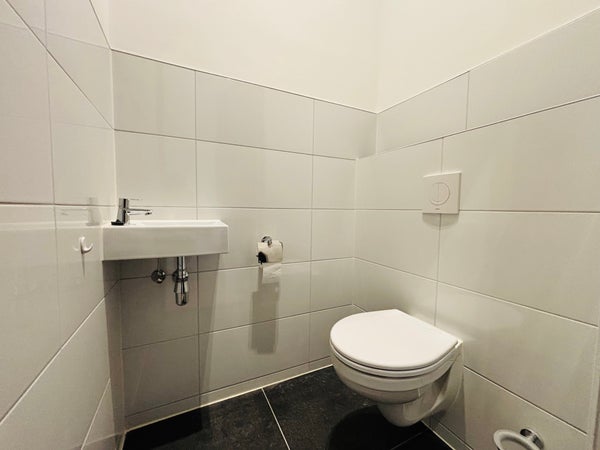LAY-OUT: Entrance at street level, you enter the communal area. You take the stairs to the 1st floor where the apartment is located at the front side. Front door, entrance hall. Spacious living room of approx. 45 m². Open kitchen with cooking island, equipped with a hob, refrigerator, freezer, combi oven, extractor hood, and dishwasher. Bedroom of approx. 11 m². Bathroom fitted with a shower, bathtub, and washbasin. The toilet is separate.