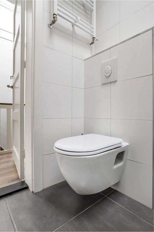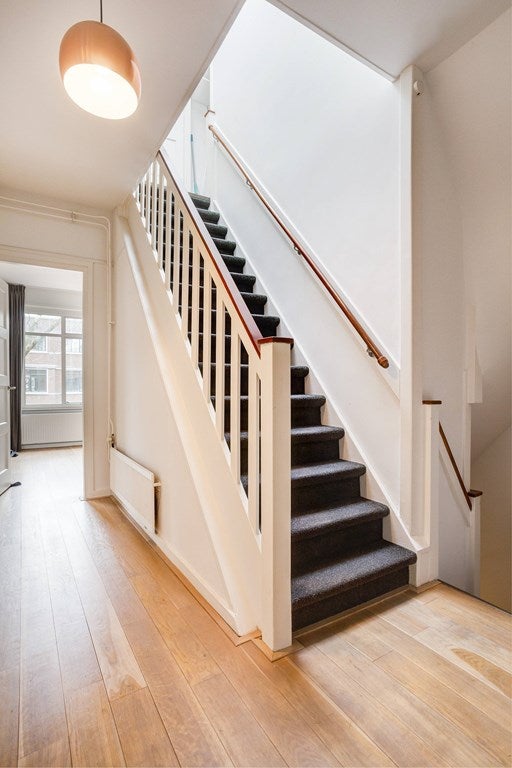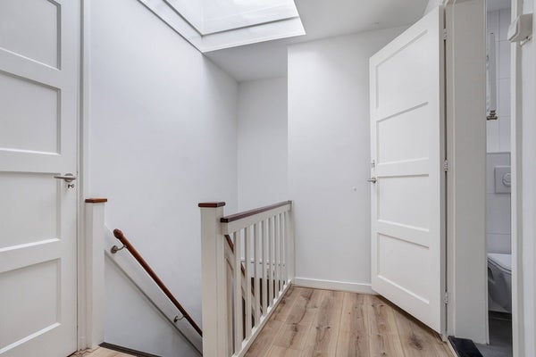 Trap naar de tweede verdieping waar u op de ruime overloop uitkomt. Het aparte toilet en de garderobekast bevinden zich hier.