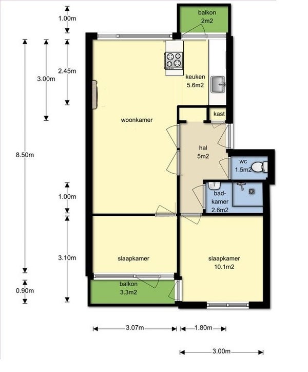 Het appartement heeft twee balkons, 1 met uitzicht op het rododendronplein ( waar iedere vrijdag de vers markt is) en toegankelijk vanuit de keuken en 1 aan de achterzijde van de woning waar middags de zon op staat. Deze is toegankelijk vanuit de slaapkamers.