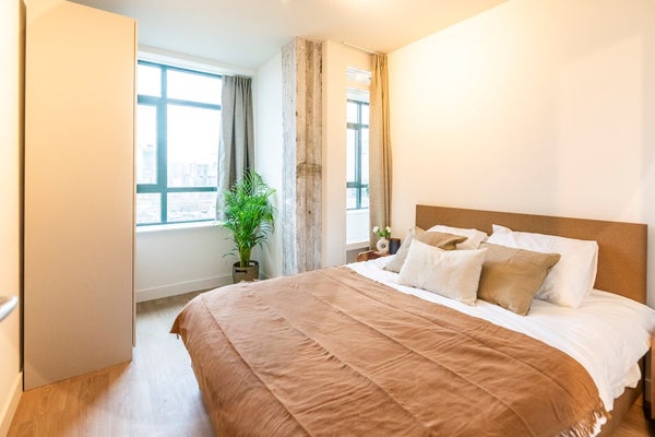 Dit volledig gemeubileerde twee-slaapkamer appartement ligt op loopafstand van Rotterdam Centraal Station. Een comfortabel huis op een prima locatie, perfect voor iedereen die langdurig in de stad wil wonen en werken.