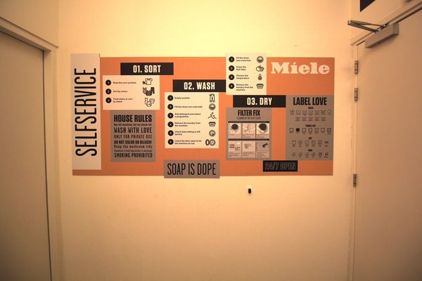 -Miele wasmachines en 2 drogers (met Appwash kun je je was doen voor €3 euro)