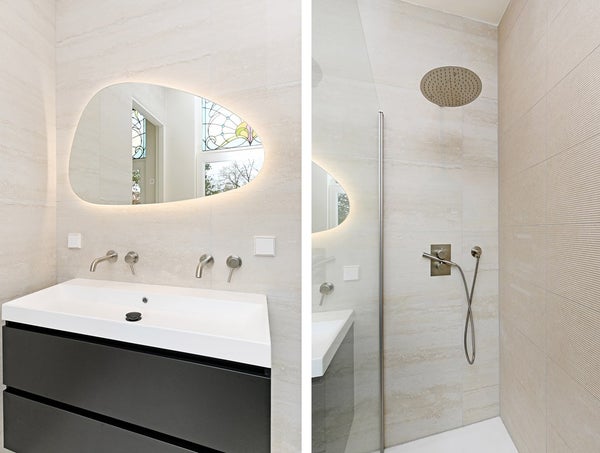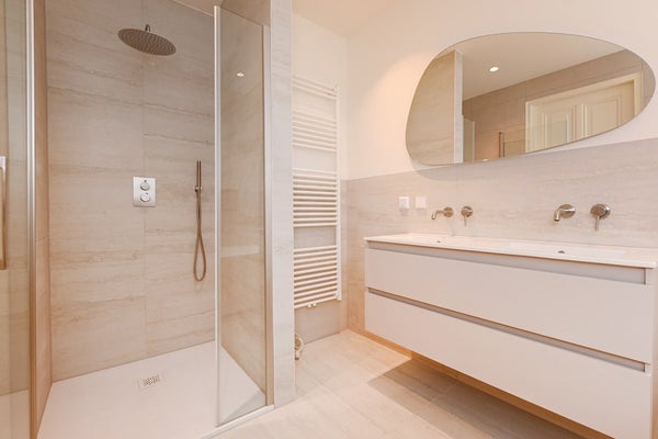 Trap naar de tweede etage met overloop. Hier bevinden zich de laatste 2 slaapkamers. Tweede badkamer met inloopdouche, ligbad en dubbele wastafel. Ook hier separaat het toilet in de hal.