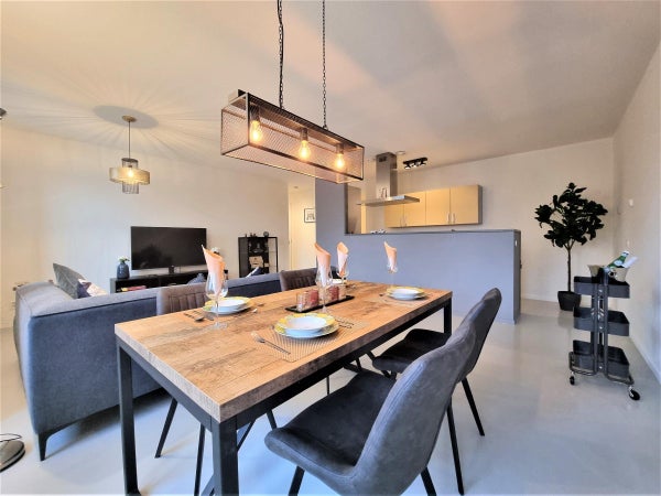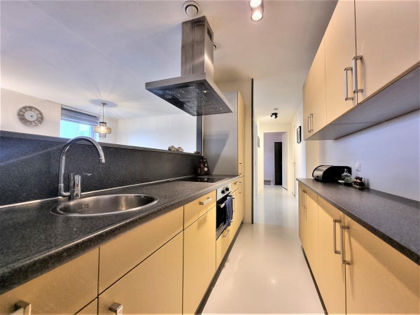 De open keuken is voorzien van alle gemakken zoals een 4-pits inductie kookplaat, afzuigkap, combimagnetron, vaatwasser en koel- en vriescombinatie.