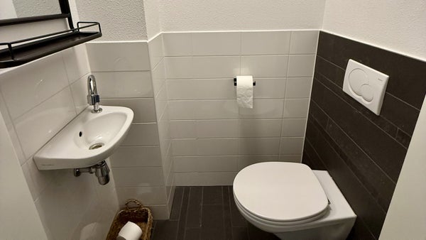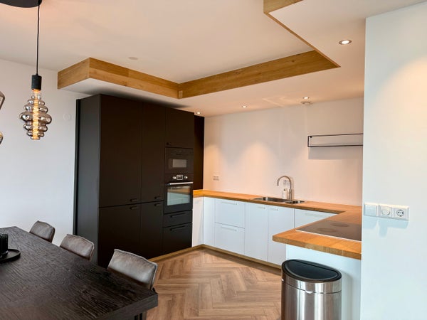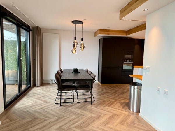 Bij binnenkomst valt de prachtige visgraatvloer meteen op, evenals de moderne keuken met inbouwapparatuur. Daarnaast is er een apart toilet voor extra gemak.