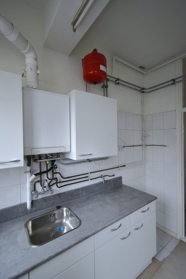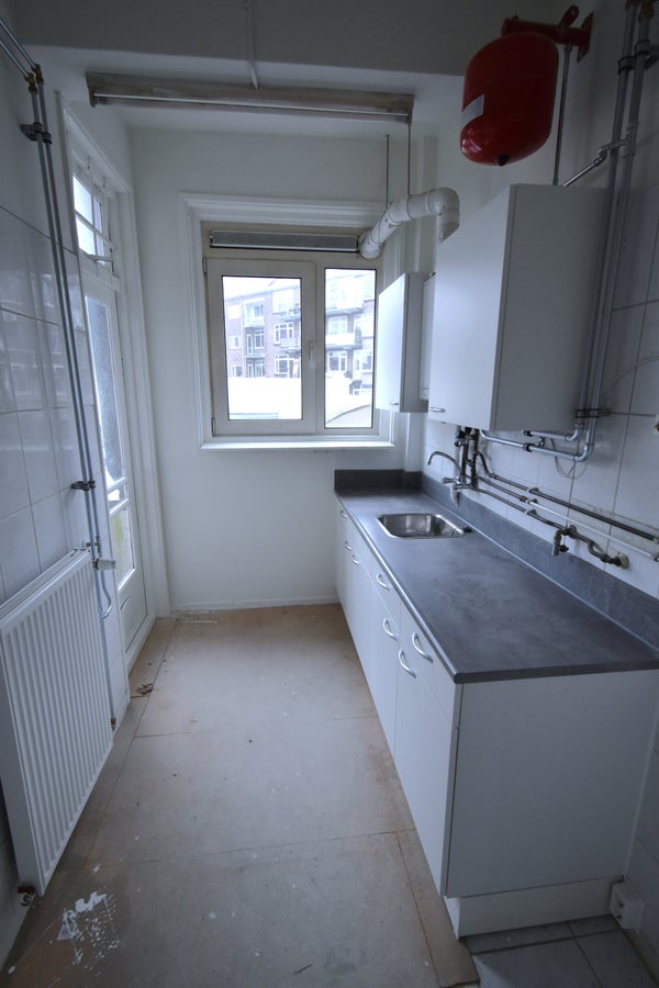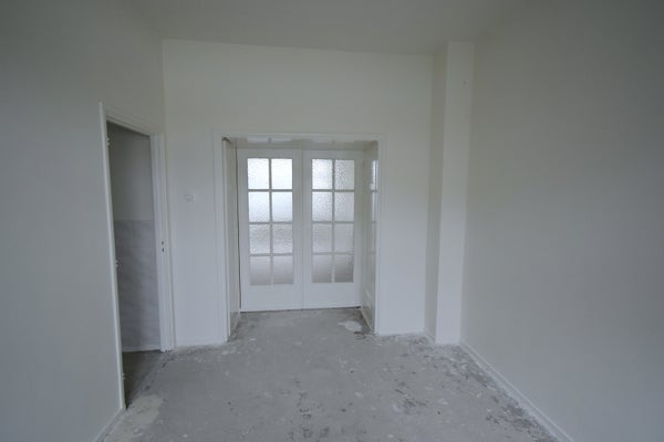 De woning wordt kaal maar met nieuw gewitte muren opgeleverd zoals te zien is op de foto's.