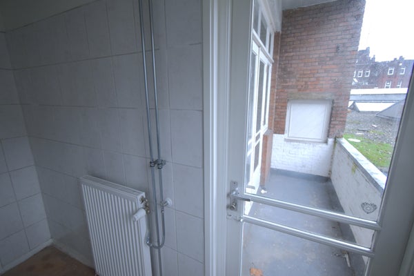 Je betreedt het pand via de portiek en stapt de woning op de eerste etage binnen in de hal, via hier heb je toegang tot alle vertrekken. Aan de voorzijde vind je de lichte woonkamer welke is voorzien van autenthieke schuifdeuren, deze geven toegang tot de slaapkamer aan de achterzijde. De slaapkamer is voorzien van openslaande deuren via waar je het balkon bereikt. Ook aan de achterzijde gelegen is de keuken, opgeleverd met een keurig keukenblok, apparatuur is niet aanwezig. Via de hal is de badkamer met inloopdouche, wastafel en wasmachine te bereiken. Ook is er een separaat toilet aanwezig. De extra kamer is ideaal in te richten als bijvoorbeeld kantoor en is gelegen aan de voorzijde van de woning.