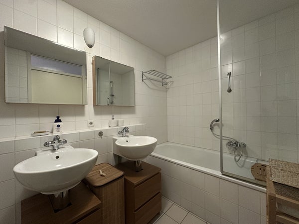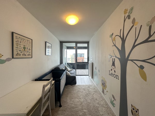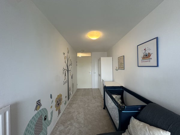 Indeling: Begane grond Gezamenlijke entree met representatieve ontvangsthal, brievenbussen, bellentableau en liften. 29e verdieping Het appartement heeft een eigen entree en hal met toegang tot alle vertrekken. De ruime woonkamer biedt een spectaculair uitzicht over de skyline en de rivier, met grote raampartijen die zorgen voor veel lichtinval. De moderne open keuken is uitgevoerd in lichte tinten en voorzien van diverse inbouwapparatuur, waaronder een nieuwe combi-oven, inductiekookplaat, afzuigkap en vaatwasser. De hoofdslaapkamer grenst aan het balkon en beschikt over een groot bed en een ingebouwde kledingkast. De tweede kamer is ingericht als kinderkamer, maar huurders mogen de muur zelf verven of naar wens aanpassen. De badkamer is afgewerkt in witte tegels en voorzien van een ligbad, aparte douche, dubbele wastafel met spiegels en voldoende opbergruimte. Daarnaast is er een separaat toilet met fonteintje aanwezig.