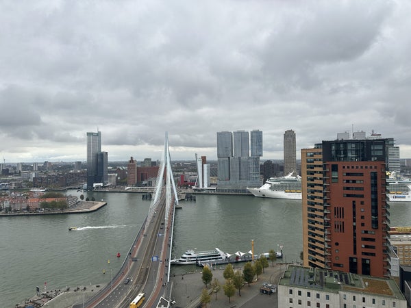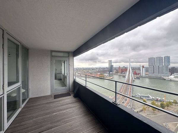 Modern en volledig gemeubileerd 3-kamerappartement gelegen op de 29e verdieping van de woontoren De Hoge Heren aan de Gedempte Zalmhaven. Dit stijlvolle appartement beschikt over twee slaapkamers, een ruim balkon met panoramisch uitzicht op de Erasmusbrug en de Maas, en biedt de mogelijkheid om een abonnement af te sluiten voor de sportschool in het gebouw. Gelegen in de populaire wijk Scheepvaartkwartier, een van de meest gewilde delen van Rotterdam. Restaurants, supermarkten en openbaar vervoer bevinden zich op loopafstand. Metrostation Leuvehaven en tramhaltes liggen om de hoek, met directe verbindingen naar Rotterdam Centraal en het centrum. De uitvalswegen A13, A16 en A20 zijn binnen enkele minuten bereikbaar.