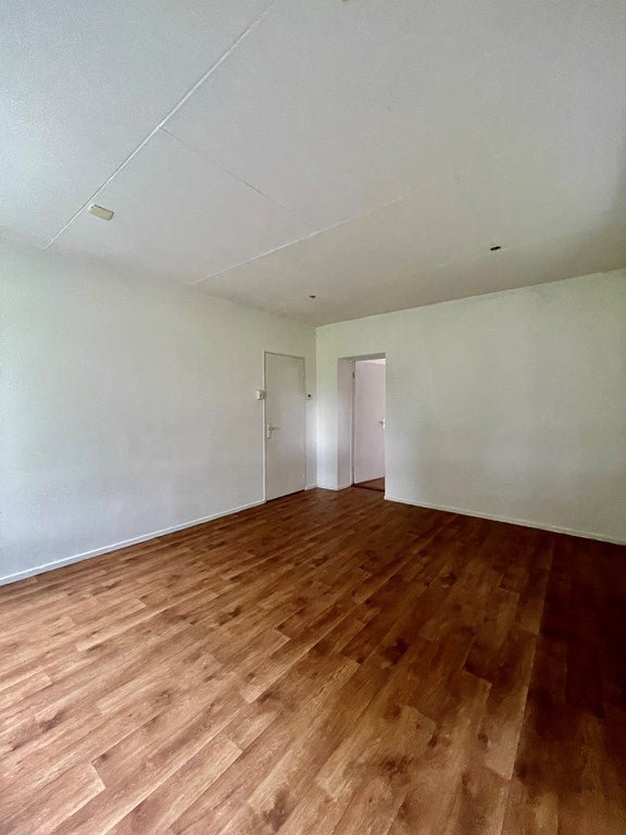 De lichte woonkamer is gelegen aan de voorzijde van het appartement.