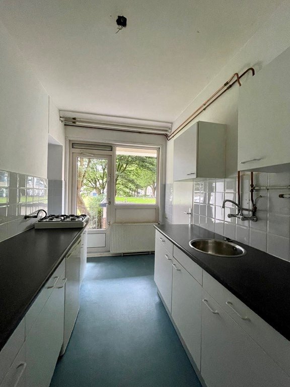 De keuken is gelegen aan de achterzijde en geeft toegang tot het ruime balkon.