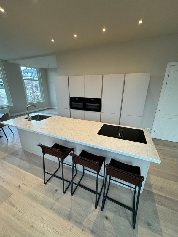 Indeling:2e verdieping;Entree appartement; hal met toegang tot de vertrekken, meterkast, toiletruimte en opbergruimte. Woonkamer met moderne open keuken met kookeiland welke is voorzien van divers en luxe inbouwapparatuur. Tevens is de keuken voorzien van voldoende opbergruimte. 3e verdieping;3 ruime slaapkamers welke zijn voorzien van (een ruim tweepersoons)bed en opbergruimte. De moderne badkamer is voorzien van een ligbad en was meubel met verlichtte spiegel.**Alle ruimtes zijn voorzien van luxe en moderne meubels, nieuwe foto's volgen snel