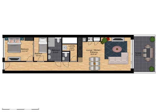 • Meubilair kan via onze voorkeursleverancier worden gehuurd.