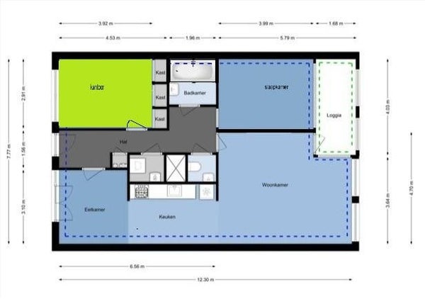 - Halfopen, volledig uitgeruste keuken (2,38 m x 3,30 m)