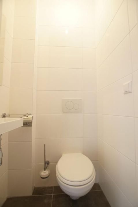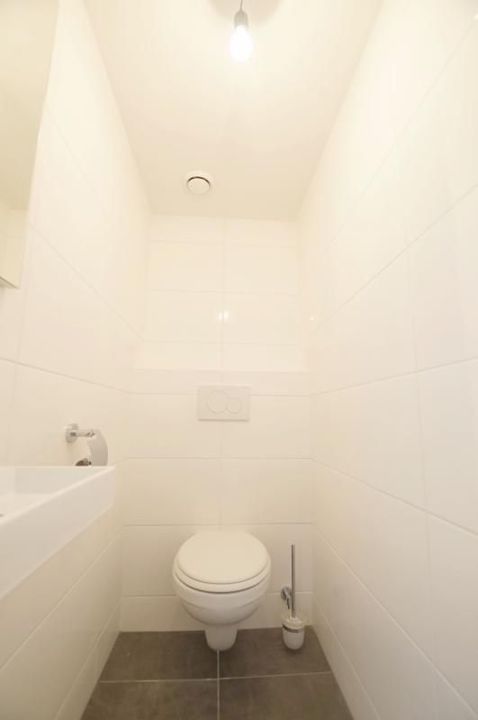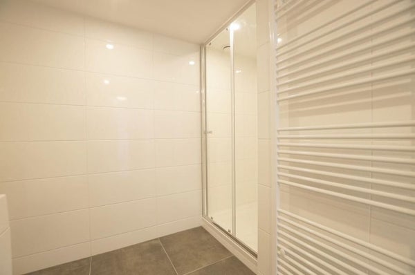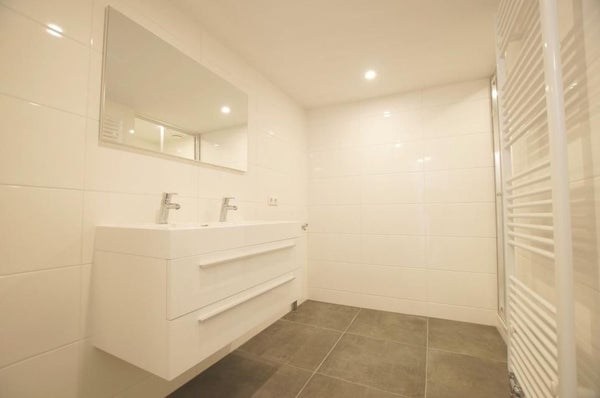 - Voorzieningen badkamer: douche, dubbele wastafel, toilet en design-radiator.